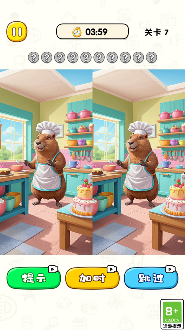 2、通关过程中,3秒内连续找到差异可触发连击,累计连击数会提升关卡结算评分,高评分能解锁更多成就与关卡奖励。