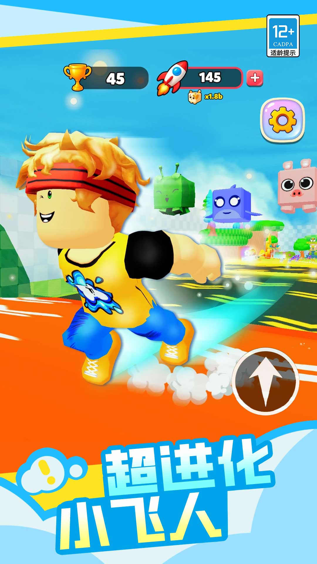 2.使用手指在屏幕上滑动控制角色行动,去尽可能收集更多的火箭,为飞行助力吧。