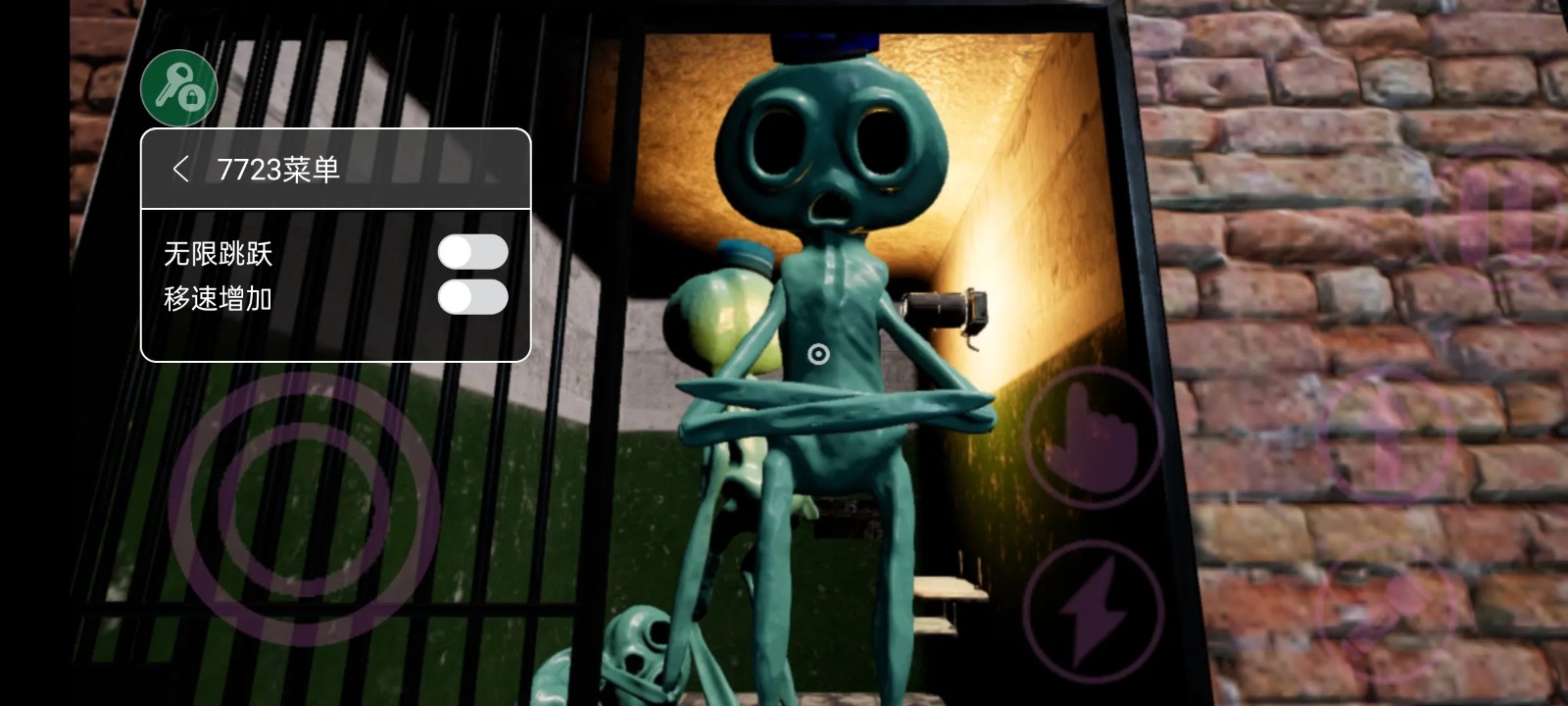 2、进入游戏后讲解一下如何操作,右侧摇杆为移动键,手指按钮为互动键