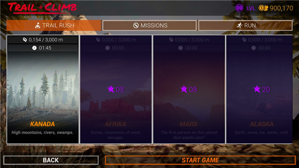 《攀登越野》玩家需要根据地图地形和任务需求,选择合适的车辆与游戏模式去闯关,同时,要留意地图上散落的食物、水、急救包等物品,完成寻找标志物、技能测试等任务,获取奖励用于车辆和装备升级!