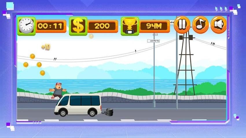 1、玩家持续跳跃前进,挑战全球最高分记录。车辆速度与密度随距离增加而提升,后期需高度集中注意力。