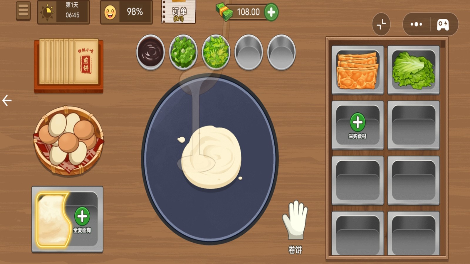 3、积累资金升级推车设备,解锁烤炉、冷藏柜等工具,提高出餐效率与菜品多样性。