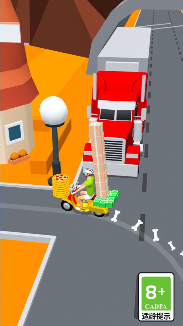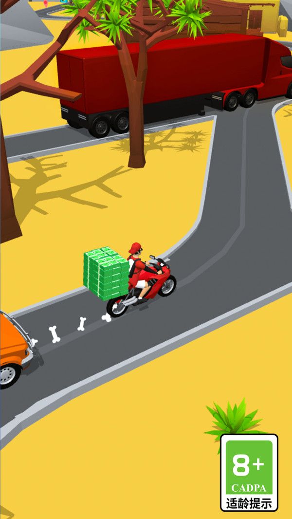 2、场景设定贴近现实生活,城市街巷的环境让玩家易产生代入感,仿佛真正置身于外卖配送的工作场景中。