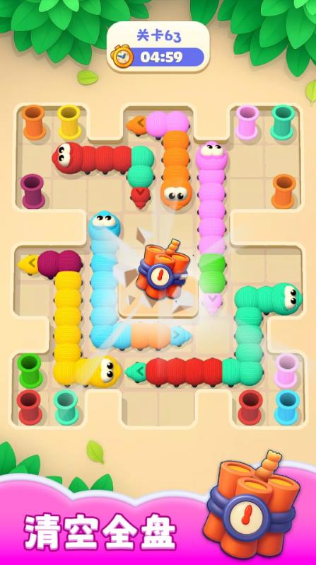 2、蠕虫必须避开复杂的障碍与狭窄的空间,灵活运用路线规划才能顺利抵达终点。