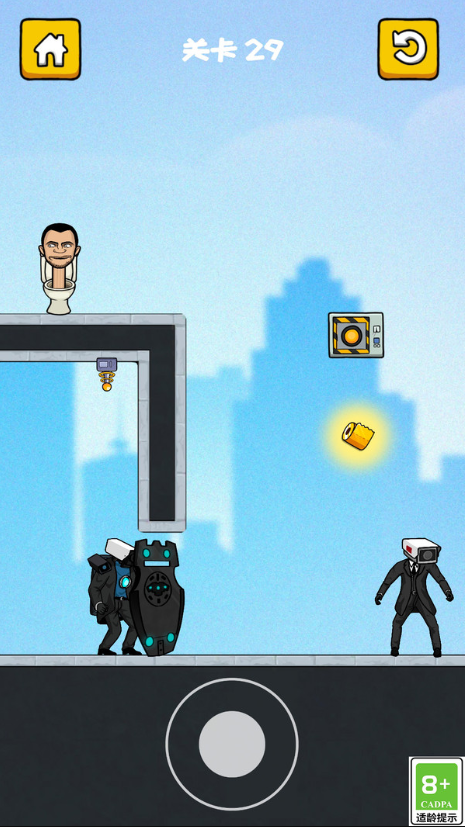 4、成功清除所有监控人后即可通关,获得的金币和奖励可用于解锁造型与能力各异的新马桶人,迎接后续更具挑战性的关卡。