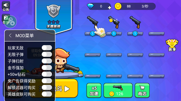 2.因为枪械的等级不同,所以每次给你产生的那些个金币奖励就会有所不同,他们的速度也是不同的,收集更多的金币选择权就在你。