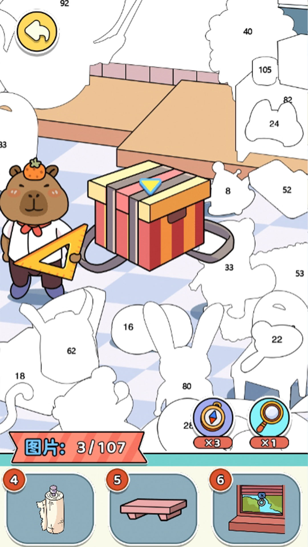 4、你可以随意移动画作,还可以利用放大镜去寻找对应数字的图形,之后完整的拼出来。