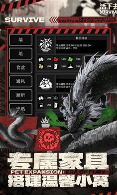 末日生存题材的角色扮演单机手游,游戏采用诡异惊悚的恐怖暗色调为背景,加以阴沉有旋律的背景音乐,塑造出一个非常有代入感的充满僵尸、丧尸的恐怖末日世界,游戏剧情便在这充满丧尸的末日后世界展开。活下去游戏简单分为两个世界:安全屋和探索之路。在安全屋中,有可供玩家打造生存工具、制作食物的工作台,有可以让玩家安心入睡的床,玩家可以在自己的安全屋中利用这些工具将在丧尸的世界里探索收集的物品打造成为必需品。在探索之路中,玩家可以利用自己在安全屋里制作的武器,在被充满丧尸的世界里辗转腾挪,深入一些可能存在有对自己生存下去有帮助的目标建筑物,探索收集零零碎碎的物品。你在活下去这款游戏中的每一次选择和取舍都将会对你接下来的生存之路产生影响,所以你有信心看到明天的太阳么?