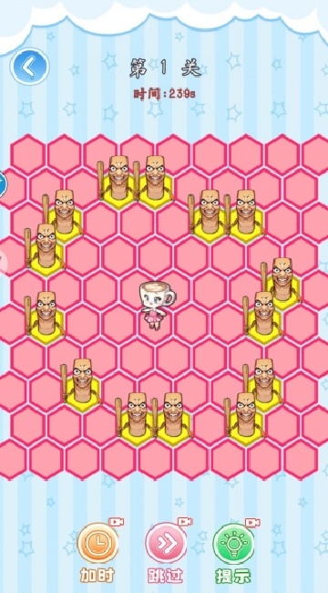 3、我选的是围堵咖啡小姐,第一关有时间限制,你要合理的通过占位去困住咖啡小姐。