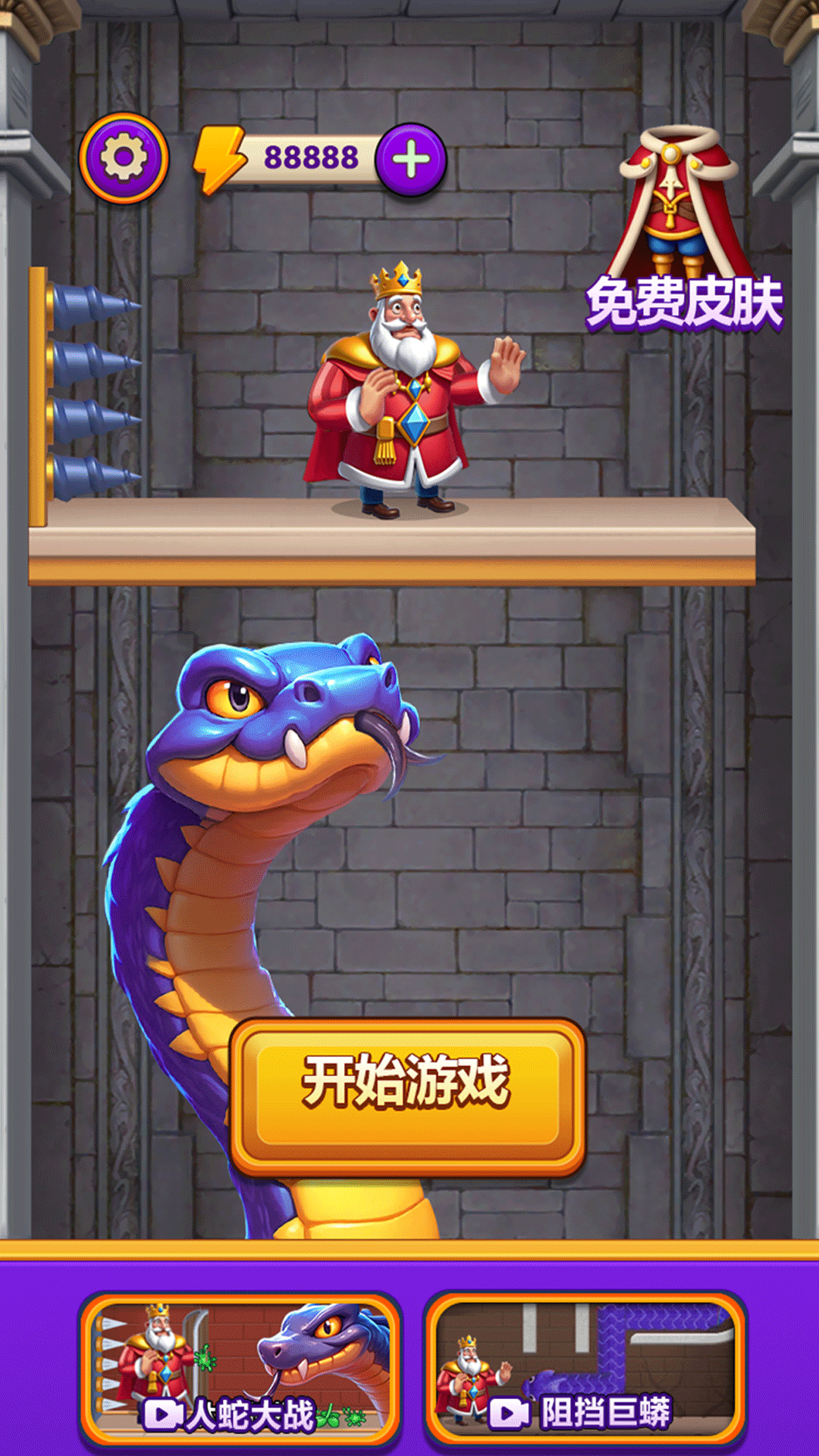 开局一条小蛇蛇这是一款消除闯关类游戏,你需要通过不断的消除来拯救关卡里的国王哦,考验玩家们的消除技术眼力观察能力以及反应能力哦,游戏里多个关卡可以选择哦,越往后关卡的难度越高哦,带给你最沉浸式的体验哦可以说是老少皆宜哦,喜欢的快来下载吧!