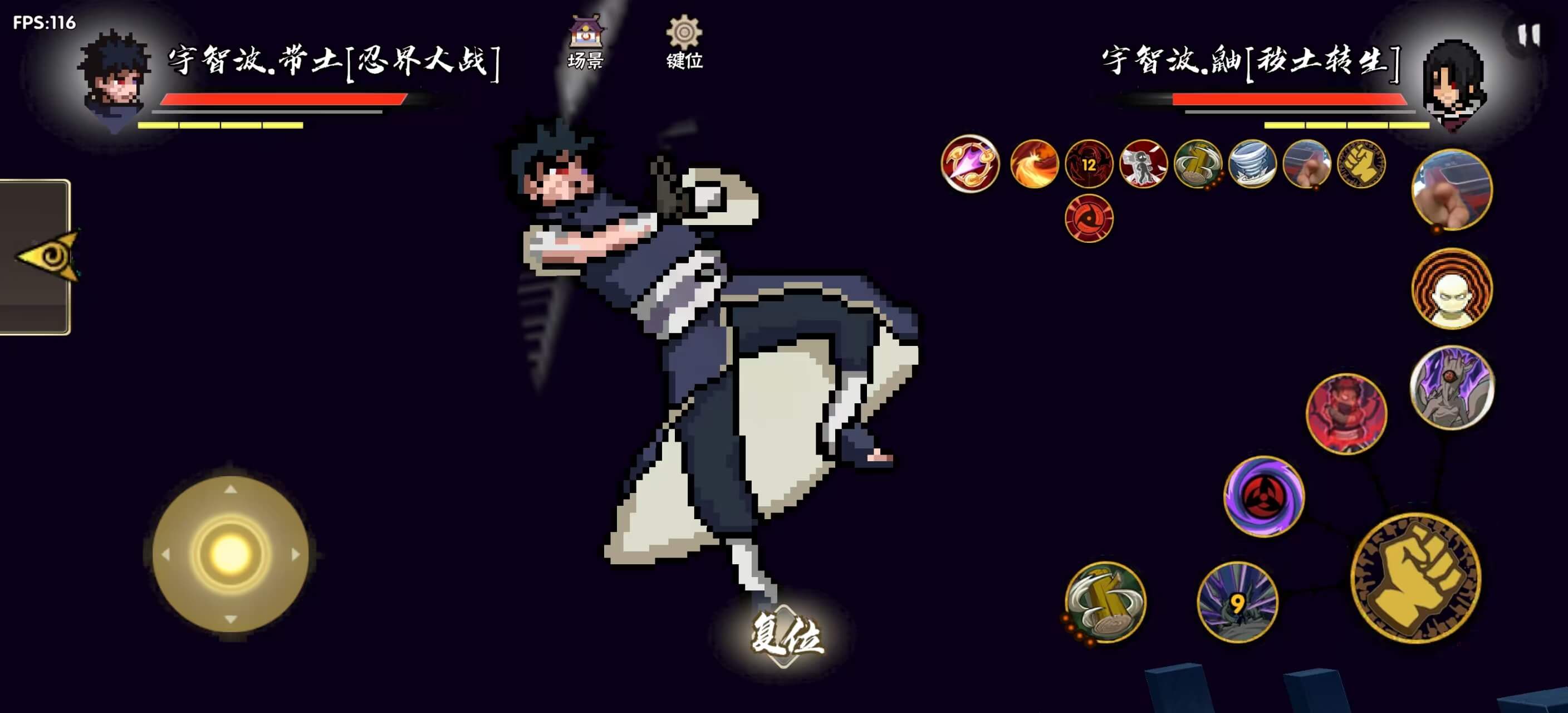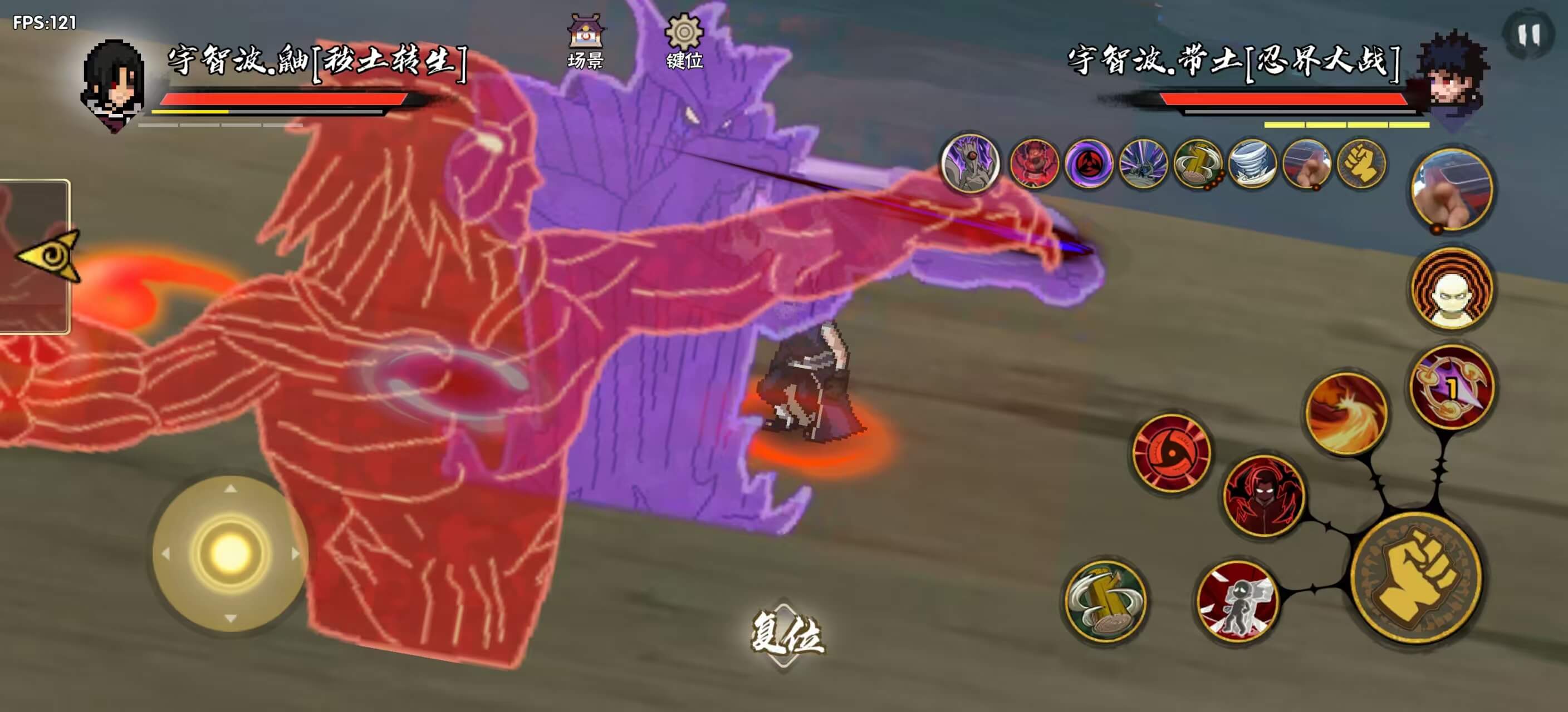 2、类似像素火影的游戏玩法,超多的技能可以使用,还能够携带秘术和支援。