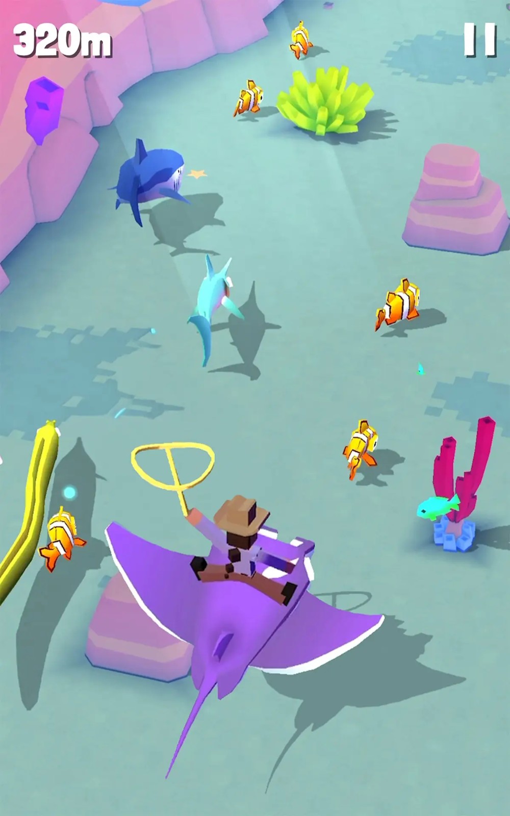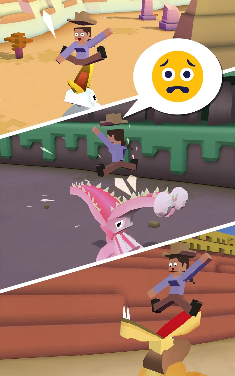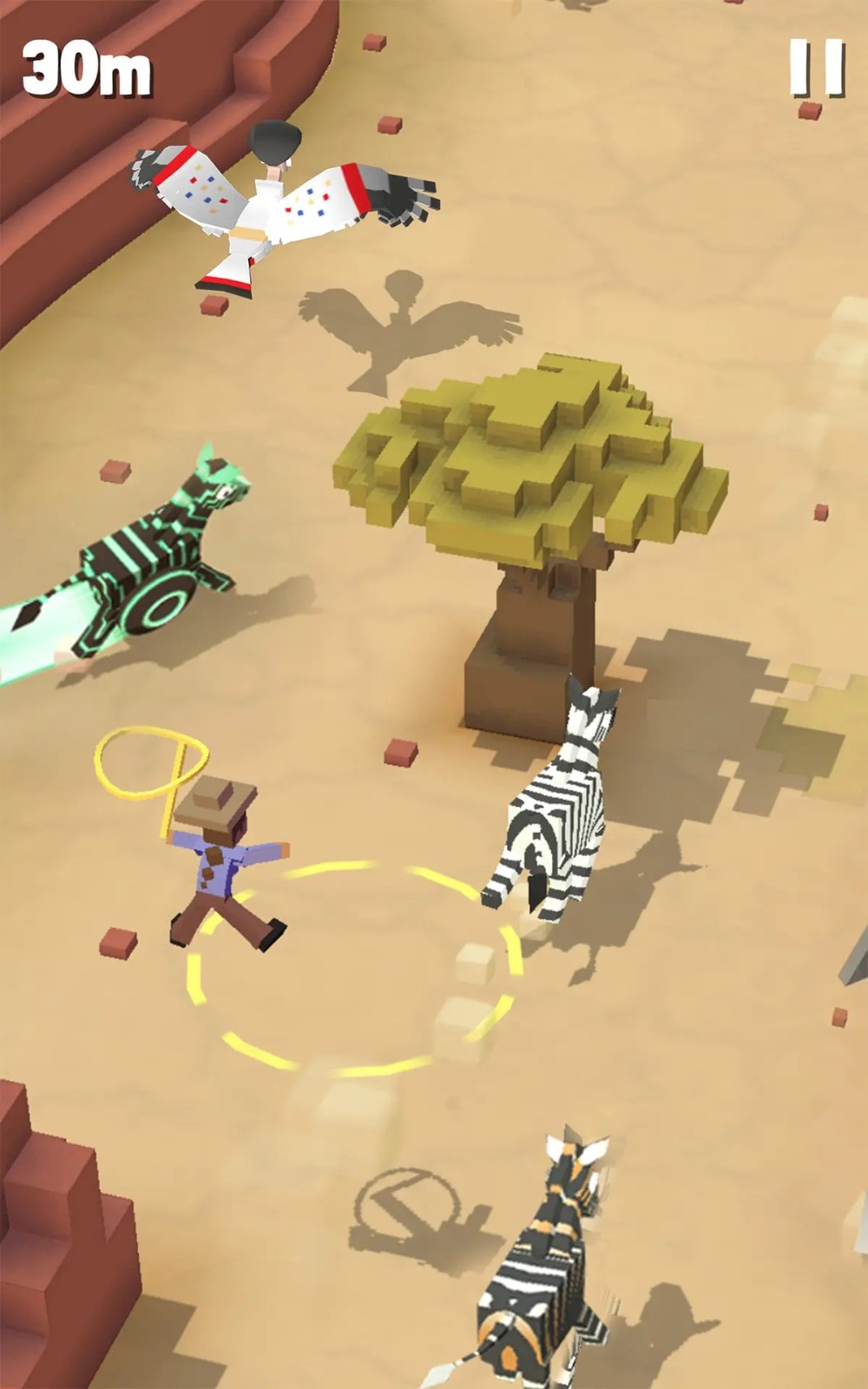 游戏中,你将扮演的是一名超级牛仔,而你的任务不仅仅是维护世界和平,更是要在热带草原、茫茫荒漠等凶险的环境下高速移动,并驯服各种珍禽异兽。作为一个“套马”的汉子,你要尽可能的套住动物,将它们带回飞船的“空中动物园”中养成;更多的动物将壮大你的园区,也可以吸引更多的游客前来参观。一款游戏多样玩法,满足了玩家不同的游戏需求,就是这么任性好玩。
