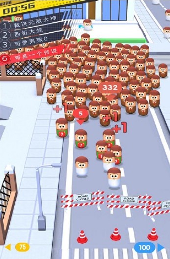 辐射人大乱斗游戏是一款竞技类吞噬游戏,游戏玩法简单有趣,游戏中玩家需要操作自己的人物,不断的吞噬比自己小的队伍和空白人群来壮大自己,非常适合休息的时候打发时间。是一款非常轻松的休闲益智类游戏,今天给玩家所推荐的这款游戏是时下抖音非常火爆的一款小游戏,有其十分独特的玩法和内容,吸引了大批的玩家,玩起来有点类似于拥挤城市,在这里你需要控制好自己的角色,不断的依靠吸纳周围的人来扩大对外,游戏的核心玩法就是以多胜少,只有人数上占据绝对的优势,你才能够压制住其他对手,并且将他们的人为己所用,整体上来说还是非常有趣的。