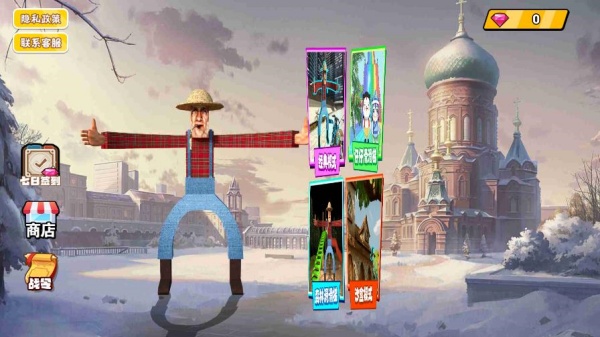 1、玩家进入游戏后,会看到像素版的约翰等着你,还有各种地图等你选择。