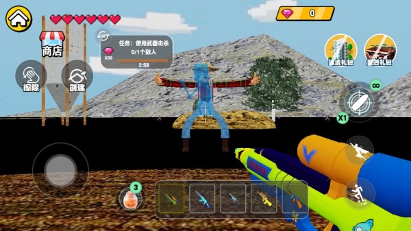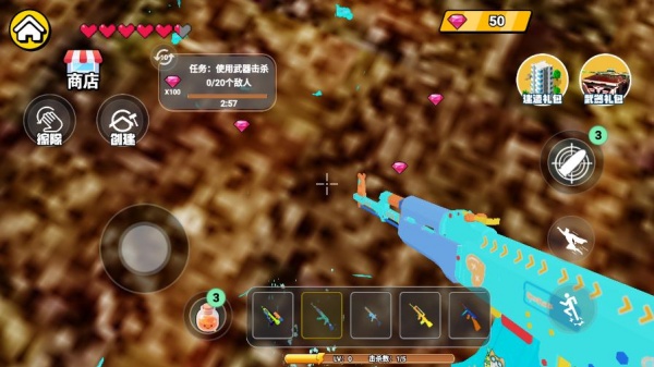 3、在战斗中,玩家需要选择合适的武器,在商店里购买合适的枪支,瞄准敌人,将约翰射击于你的枪支下,还能获得钻石作为奖励。