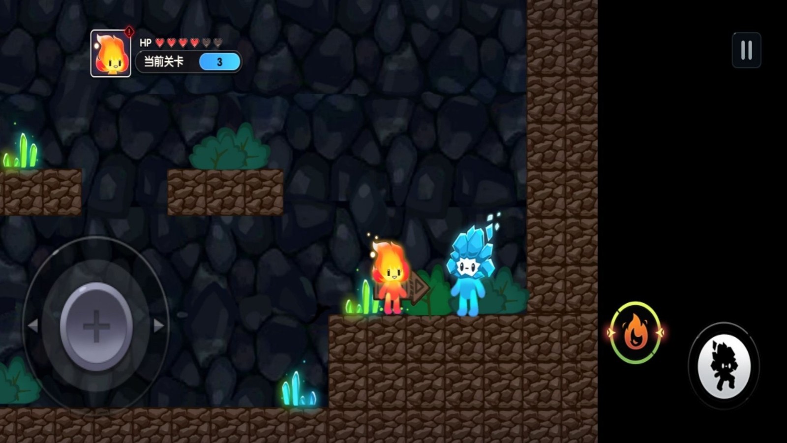 3.使用左手来控制火人的前进方向,右手控制跳跃以及攻击。
