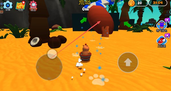 1、进入地图后,跟着箭头指引前进,用左侧按钮控制移动方向。