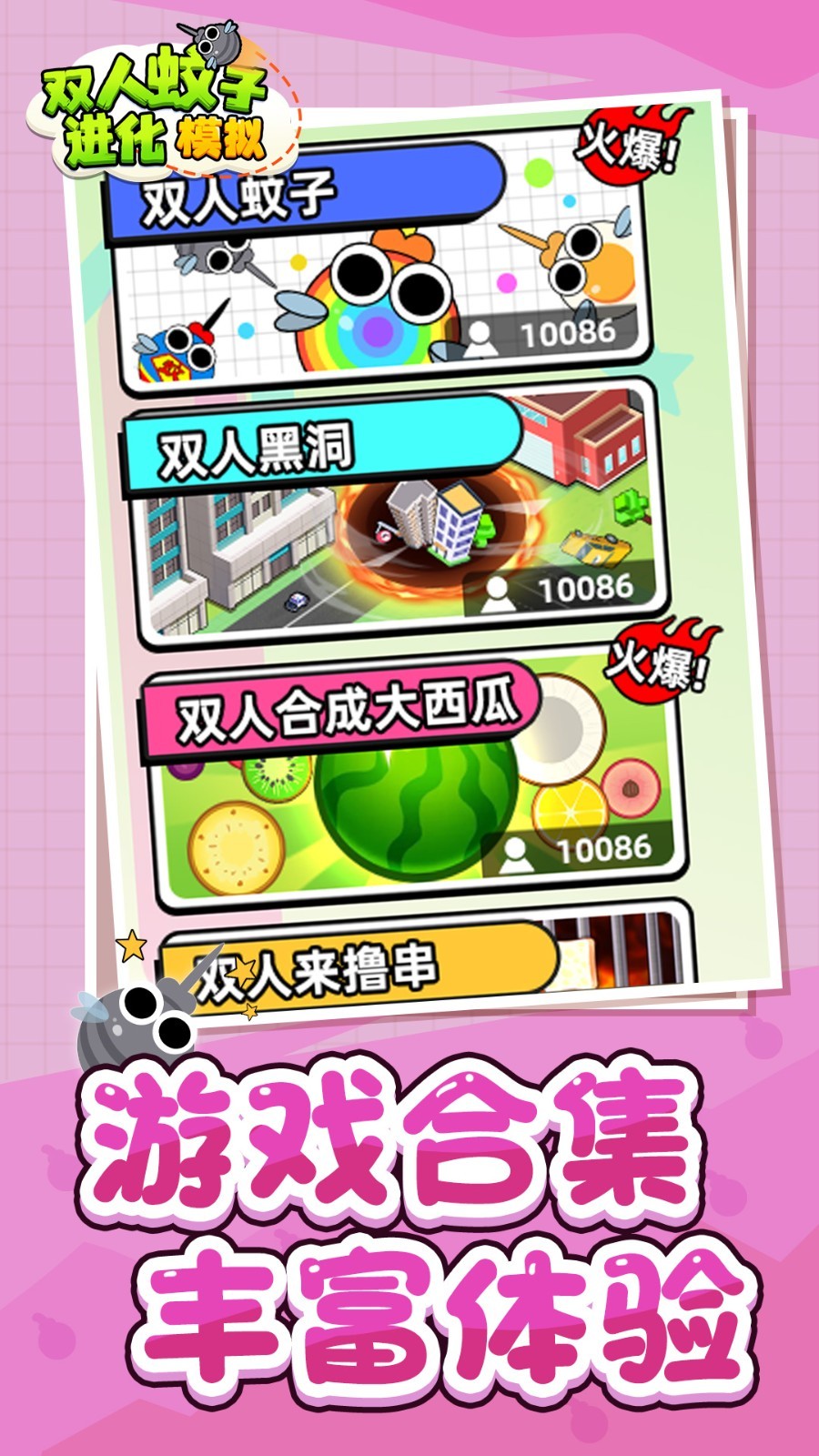 双人蚊子进化模拟这是一款模拟闯关类游戏,游戏里包含了多个游戏合集给你非常丰富的游戏体验,双人共享给你加倍快乐,变身成为蚊子开始不断的吸血进化哦,不断的进化成为终极形态来击败你的对手哦,游戏里多个关卡可以选择哦,喜欢的快来下载吧!