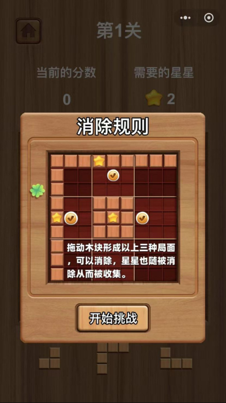 3、当放置的木块严丝合缝地填满任意一整行或一整列时,该行或列的所有方块会立即被消除,您将获得分数并腾出宝贵空间。