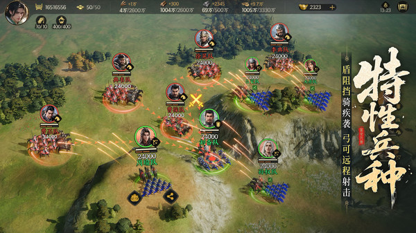 游戏提供了曹操、关羽以及赵云等近千名武将,每一位都是取自真实的三国历史,玩家都可以招降三国历史名将到自己麾下,与他们一同驰骋沙场。潜力分配,装备搭配,玩家可以根据自己的喜好培养出符合自己心意的将领。