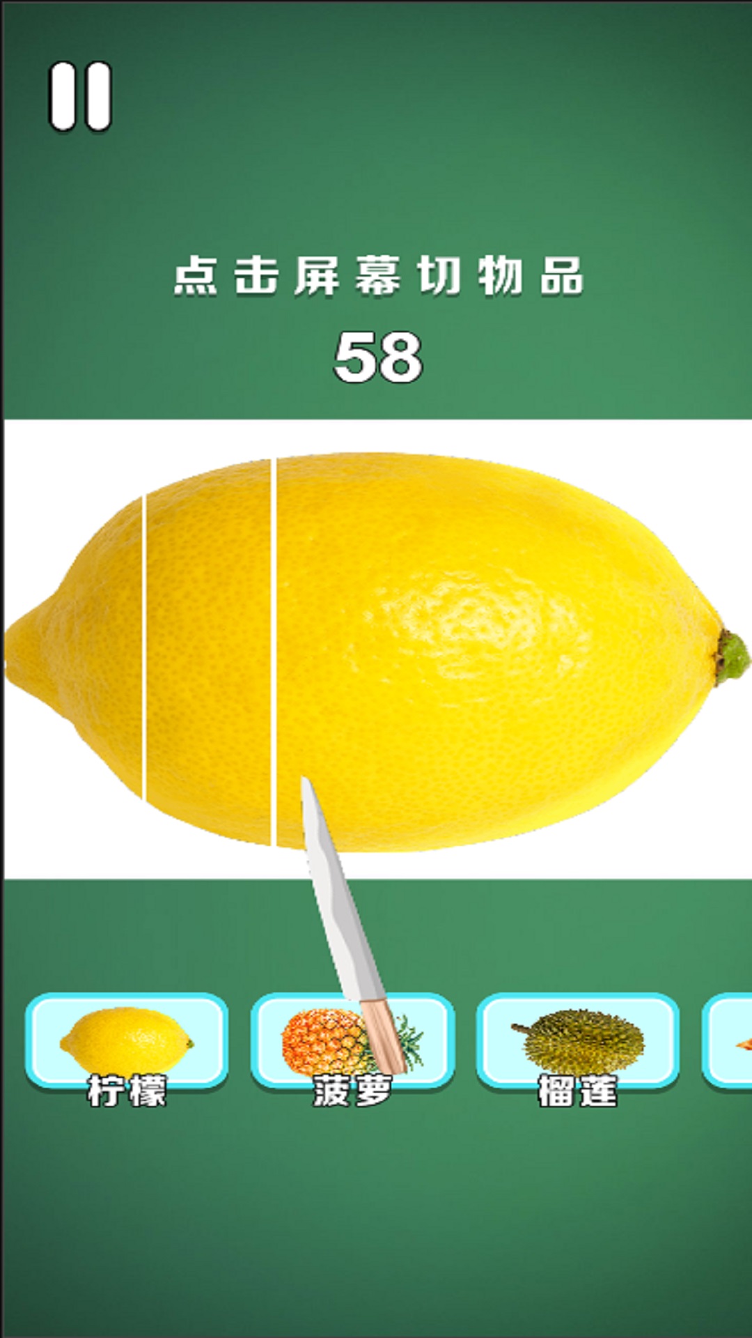 2、游戏内包含菠萝、柠檬、榴莲等多种不同物品供切割,丰富的切割对象让简单玩法不单调。