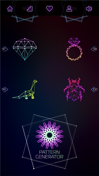 2.玩家要将不同的线条全部连接起来并组成一个漂亮的图形,你能自由的旋转和拖动在挑战中你也能自由的发挥,这部作品就操作上看确实是没有难度的,但是玩法和挑战却极具挑战性,你在游戏中将要面对的是各种各样不同图形的挑战,是一部休闲益智的游戏作品。