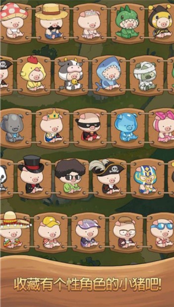 1.作品中设计出了超多可爱的小猪角色,除此之外还拥有各种不同的水果等元素在等待玩等收集,作品中拥有数量庞大的关卡,而且打造出了庞大的世界地图,作品的挑战是没有时间限制,玩家能在没有任何压力的前提下享受游戏,你能收集到大量可爱的小猪角色,拥有二十种以上的小猪角色。