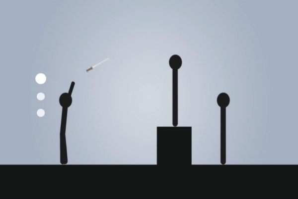 1、操控火柴人在关卡中移动,选择合适的武器,观察敌人位置与场景环境,调整投掷角度和力度,向敌人发起精准攻击。