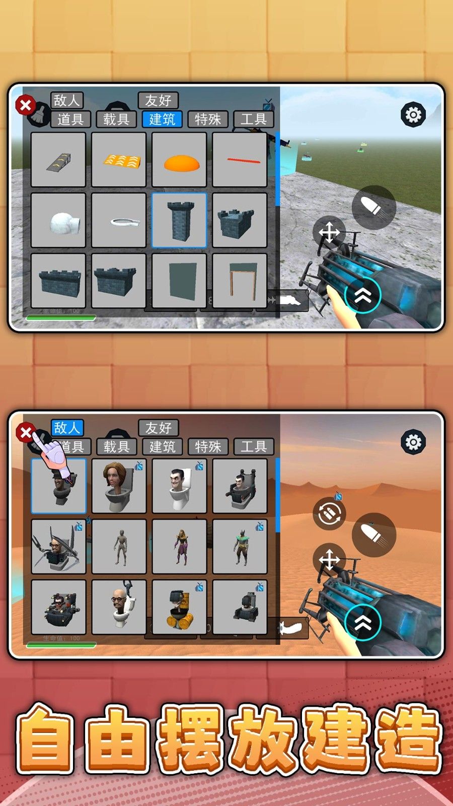 3、包含自由摆放建造系统,可按需搭建防御工事、布置道具,建造成果直接影响战局,让战斗兼具射击爽感与建造乐趣。