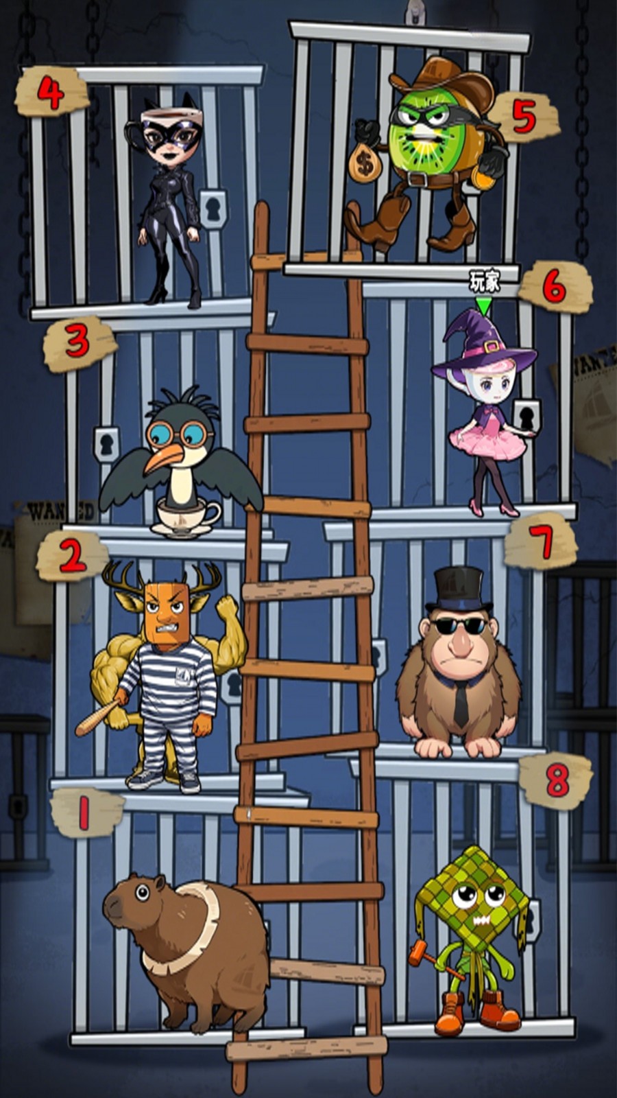 1、进入游戏后,首先选择你的角色,比如囚服木棍人,每个角色都有独特的外观和特点。