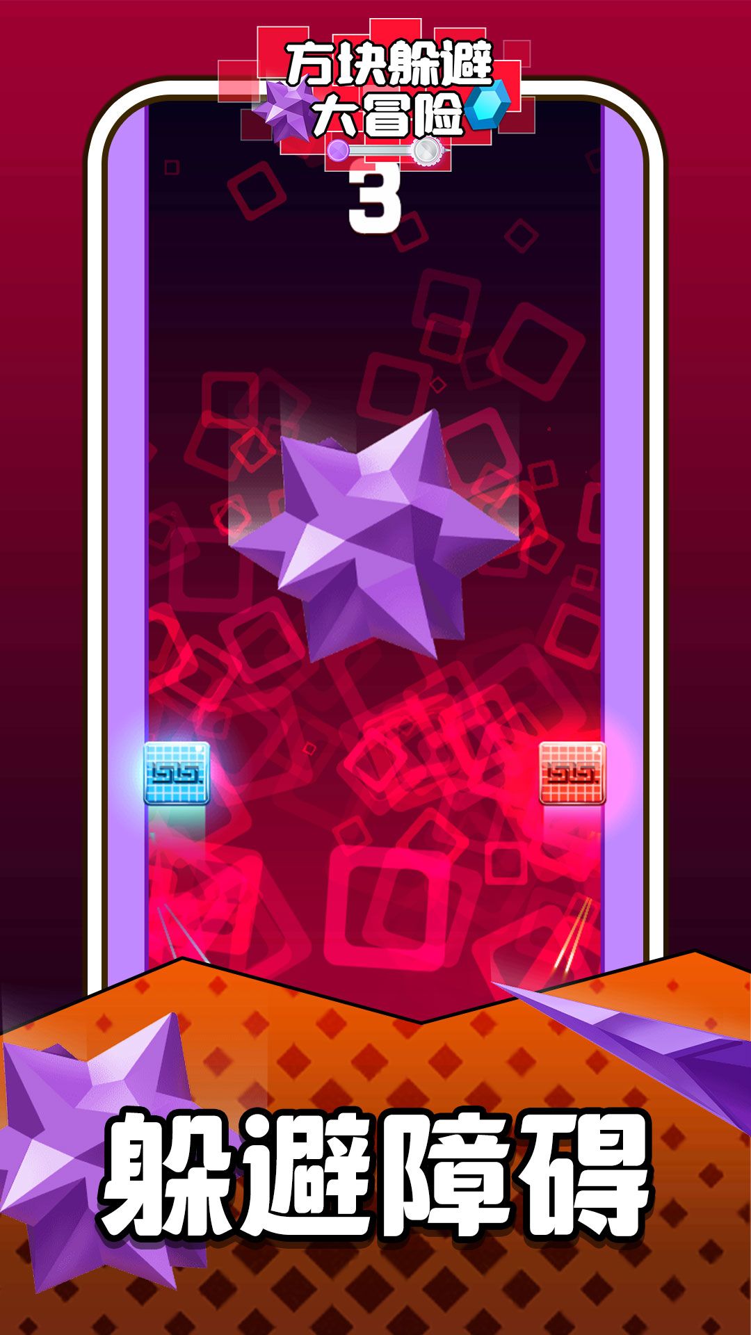 方块躲避大冒险手机版下载,一款休闲益智的闯关小游戏,玩法简单却充满挑战。玩家需要快速反应,灵活躲避从屏幕两端飞来的各种形状方块,同时收集星星以获得更高分数。随着关卡推进,方块速度加快,障碍物种类增多,考验玩家的反应力和手眼协调能力。游戏界面简洁清爽,操作便捷,适合随时随地轻松游玩。