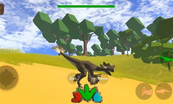 1、玩家可从多种史前生物中选择初始角色,通过寻找水源、食物与安全巢穴维持生命值,适应原始环境的生存挑战。
