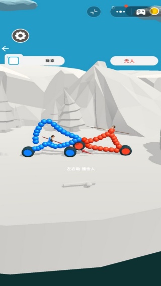 2、点击“战斗”,左右滑动驾驶你的小车去撞击对面的敌人,将他撞下后方悬崖,争取先发制人。