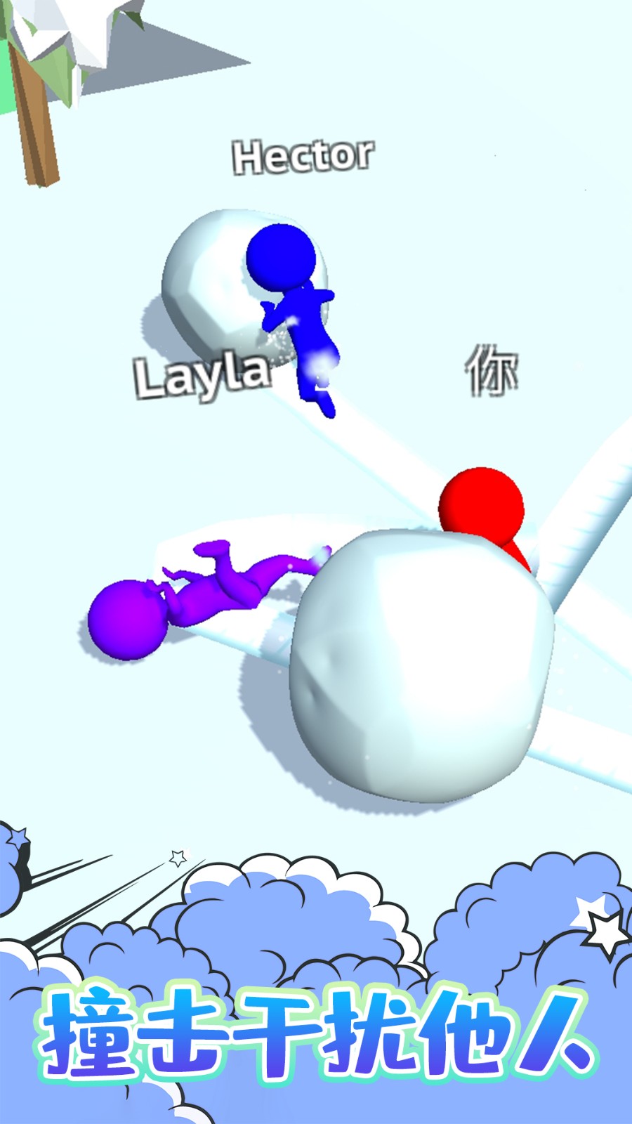 1.策略竞技对抗:玩家与NPC在雪地场景中展开竞速对决,通过推雪球、填桥梁等动作完成闯关挑战,最终以抵达终点的顺序决定胜负。