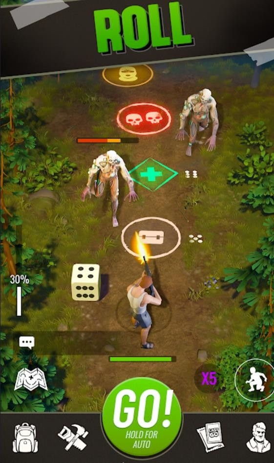 1、点击掷骰子前进,每次前进都会触发不同的事件,如资源获取、僵尸战斗或隐藏陷阱。