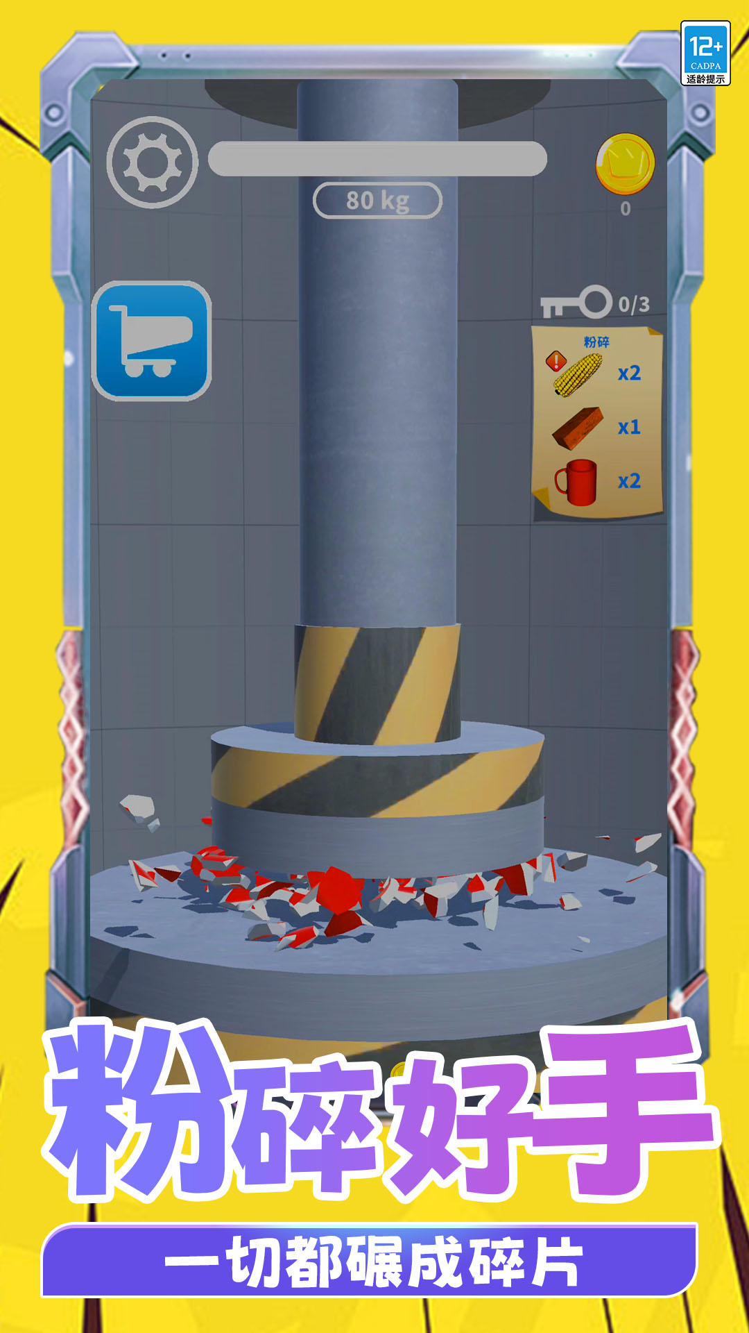 3.资源循环体系:粉碎物品获取金币,用于解锁新挑战与升级设备,让玩家可以不断挑战高难度获取更多欢乐。