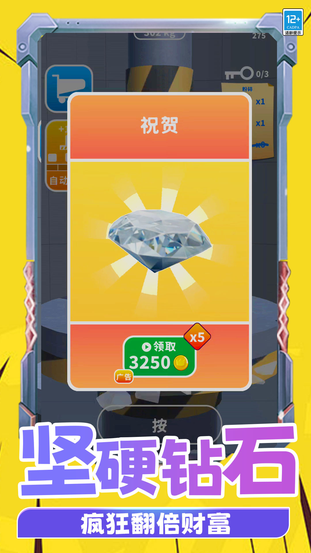 1.点击触发粉碎机制:通过单次点击启动液压机,观察压力累积过程,把握时机确保目标彻底破碎。