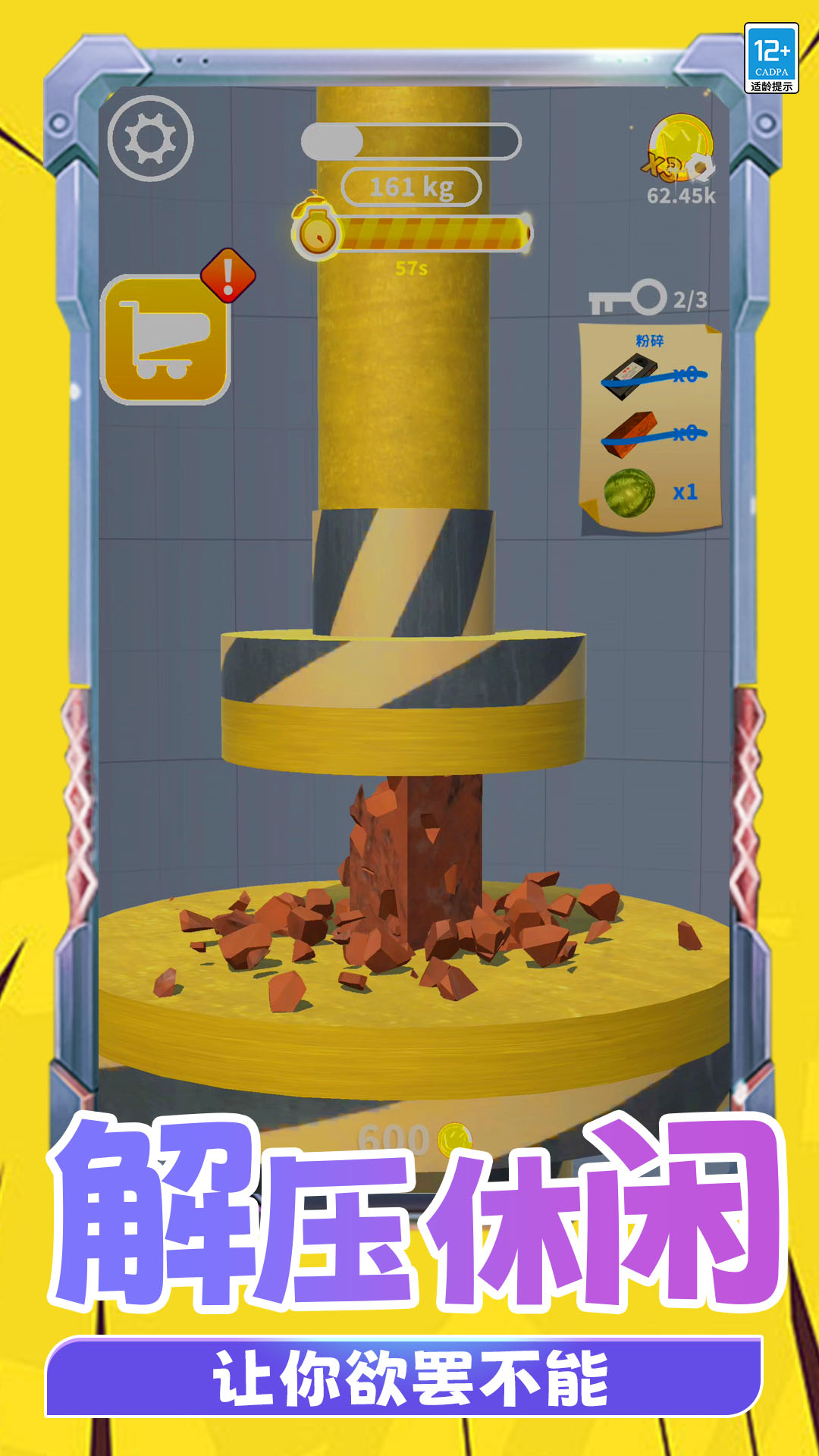 4.通过液压机破坏这一核心机制,融合资源管理、装备升级与渐进式难度设计,为玩家提供兼具解压性与挑战性的闯关体验。