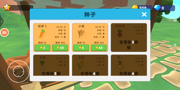 3.策略驱动的成长体系:通过等级提升解锁稀有作物种子,需合理配置资源与时间,实现收益最大化。