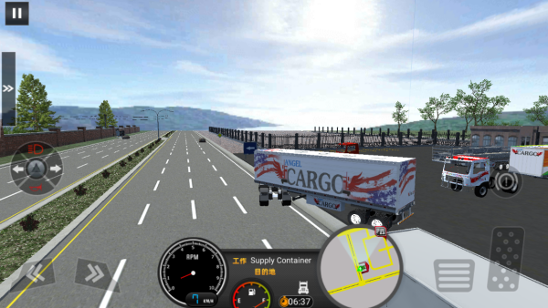 5.使用左侧按钮调整方向,使用右侧的油门控制行动。在规定时间内将货物运送到目的地吧!