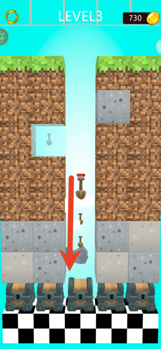 2、控制铲子自由下落,精准命中方块进行消除,策略性安排消除顺序。