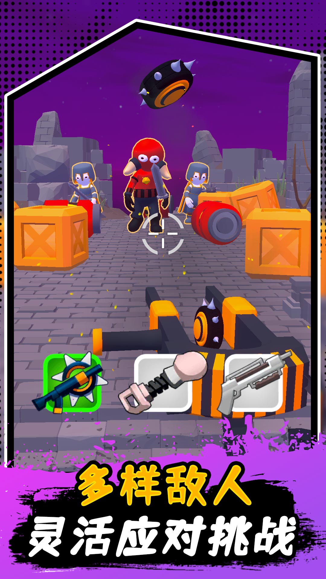 3、创意武器系统丰富,包含鲨鱼枪、弹簧锤、冰冻射线等数十种搞怪装备,攻击方式各具特色。