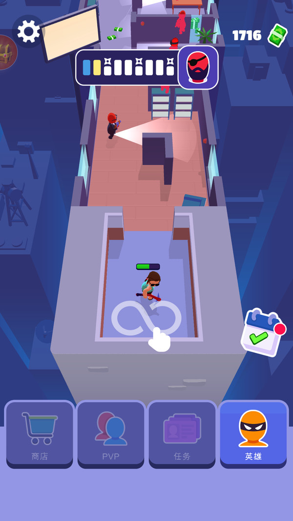 夜隐行动这是一款冒险闯关类游戏,你需要控制角色开始闯关哦,你需要消灭所有的敌人哦,利用道具来保证自己千万不能被发现哦,采用了上帝视角展开哦,带给你最沉浸式的射击闯关体验哦,多个武器可以选择哦,游戏适合各个年龄段的玩家哦,喜欢的快来下载吧!