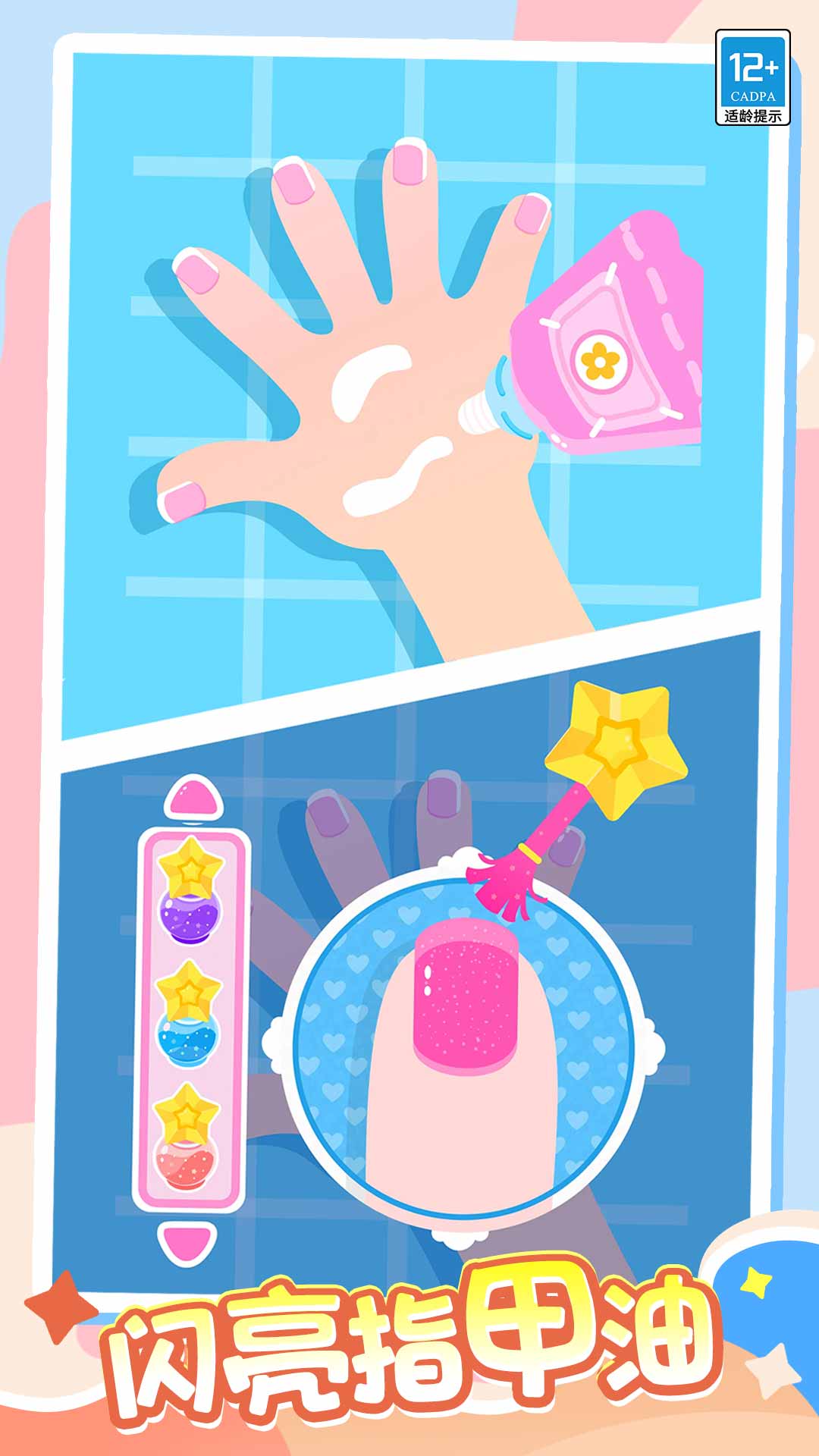 1.造型系统:玩家可通过化妆调整公主妆容细节、搭配时尚服饰,或通过美甲设计个性化指尖风格。