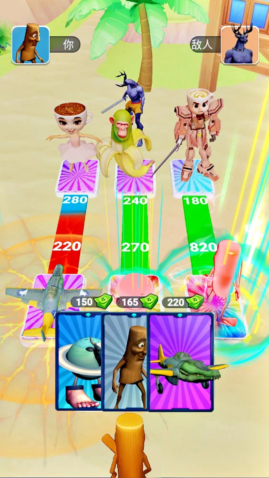 1、在跑酷过程中玩家可以使用金币来召唤山海经怪物,每种怪物都有不同的战斗力,带领怪物一起到达终点。
