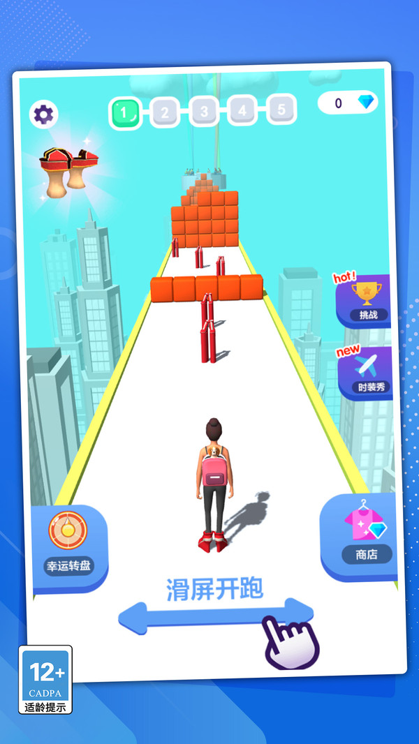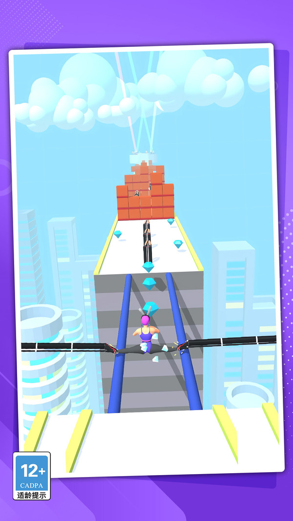 1、玩家的目标是收集高跟鞋并安全到达终点,在跑酷过程中躲避所有的障碍物,不断提升角色的高度。