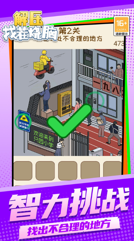 3、游戏内没有复杂规则,只需轻松点击即可标记差异,享受最纯粹的解压找茬乐趣。