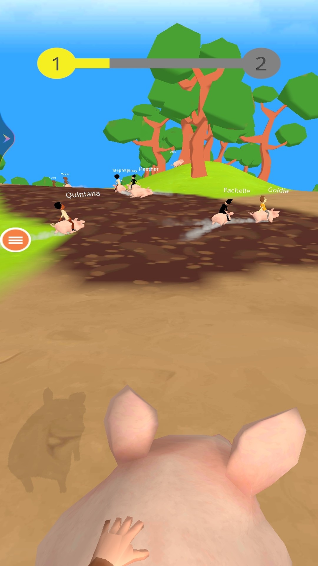 3.以简洁操作为核心,通过骑猪跑酷、撞击障碍、冲刺夺冠的基础循环,结合卡通画风与欢快音效,打造出老少皆宜的休闲竞技游戏。