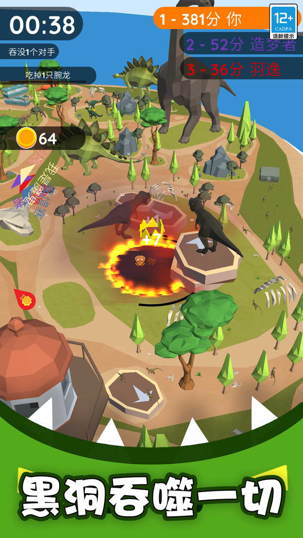 2、若自身体积处于劣势,立即避开体积更大的对手,优先吞噬零散的中型物品缩小差距。