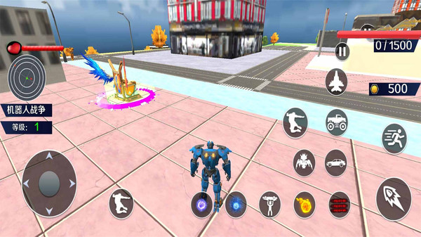 1、通过虚拟摇杆控制机甲移动,技能按键释放专属战斗技能,战斗支持连招组合,连续触发基础攻击与技能可打出高额伤害。